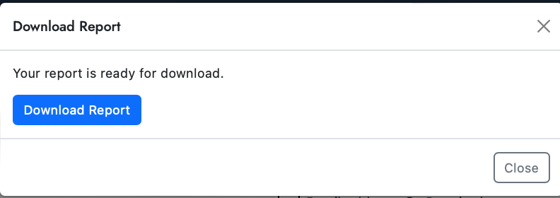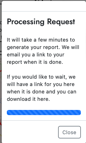 You can either wait for another window to pop-up with a 'Download Report' button or close the windows and start on another request. If you choose to close the windows, you can access your report via a link that will be emailed to you.
